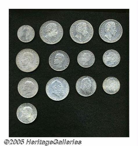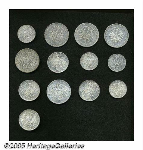 <B>Bavaria. Assorted 2, 3, & 5 Mark lot including:</B></I> 5 Mark 1874-D, KM502, cleaned VF; (2) 1876-D, KM502, VF; 2 Mark 1902-D, KM511.1, VF; 2 Mark 1905-D, Km511.1, VF; 2 Mark 1908-D, KM511.1, VF; 3 Mark 1911-D, KM515, VF-XF; 5 Mark 1900-D, KM512, VF; 2 Mark 1911-D, KM516, AU; 3 Mark 1911-D, KM517, AU; 5 Mark 1911-D, KM518, XF; and (2) 1914-D 3 Marks, KM520, XF and AU. <B>A sold as is, no return lot.</B></I> From the Dr. Kurt Peters Collection.