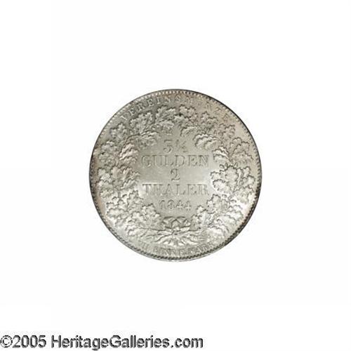 <B>Frankfurt. 2 Taler 1844,</B></I> KM329, brilliant UNC with a hint of golden toning over fully luster.