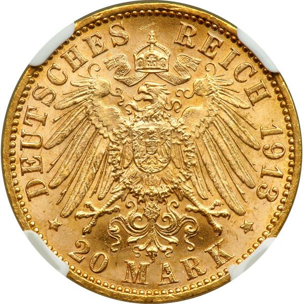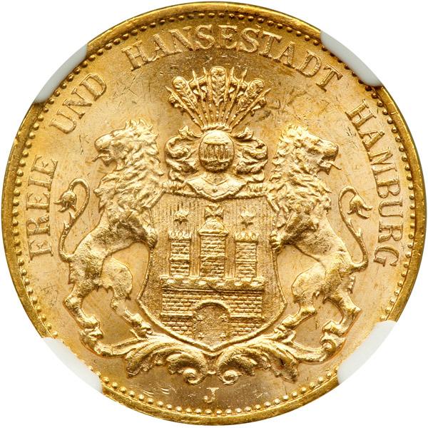 German States - Hamburg. 20 Marks, 1913-J. NGC MS65