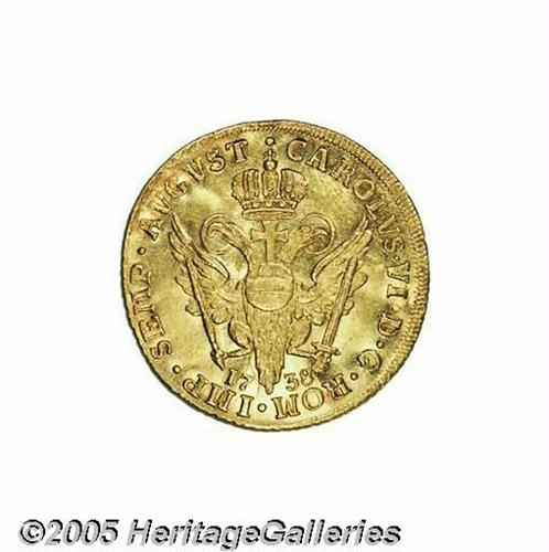 <B>Hamburg. Gold Ducat 1738-IHL,</B></I> Crowned double eagle/Arms in cartouche, Fr-1120, KM150, XF details with a wavy flan and light hairlines. From the Dr. Kurt Peters Collection.
