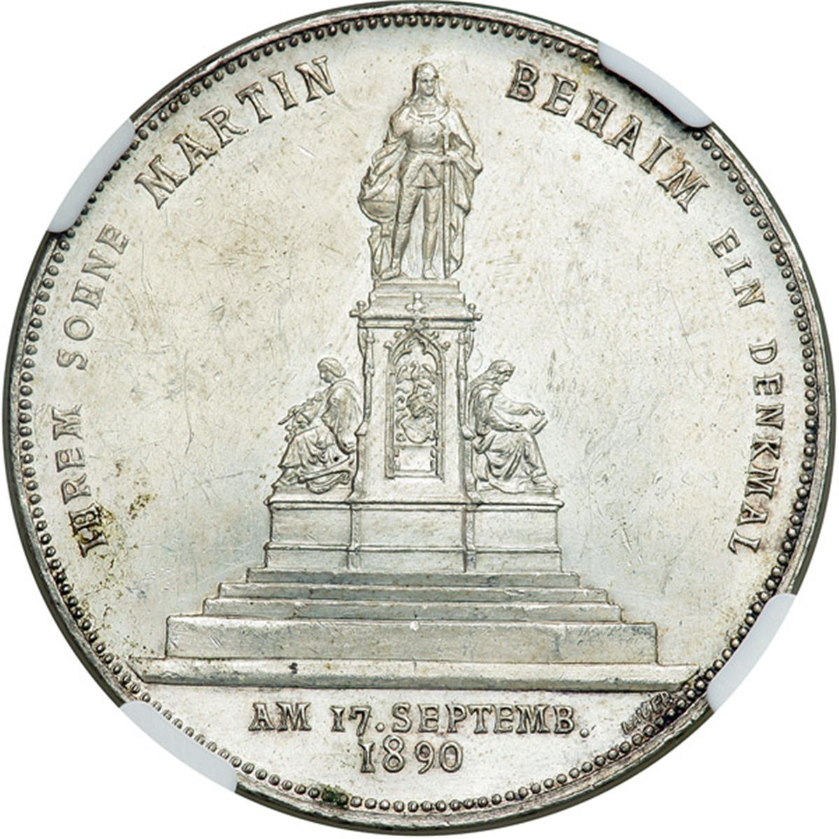 German States - Nuremberg. Medal, 1890. Erlanger-1316. Silver. 18.3 grams. 33.4 mm. Female. Reverse: Monument. NGC graded MS-62.