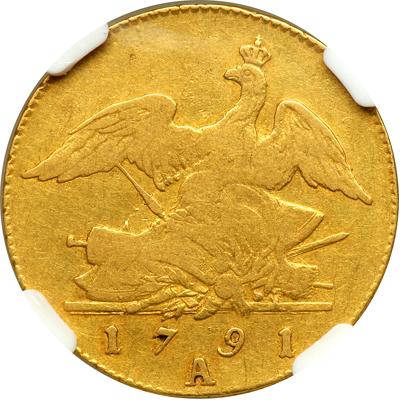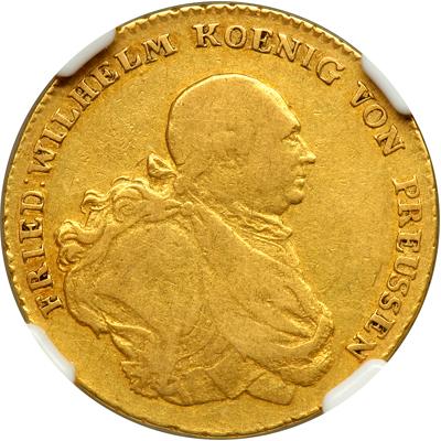 German States - Prussia. 1 Frederick d'or, 1791-A. Fr-2417; KM-349. Friedrich Wilhelm II, 1786-1797. Draped bust right. Reverse: Eagle above trophies. In a new NGC 4 prong holder. NGC graded Fine-12.