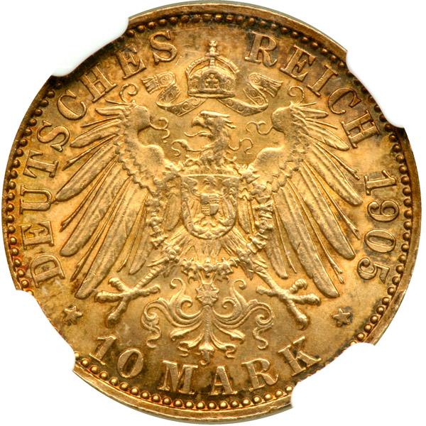 German States - Prussia. 10 Marks, 1905-A. NGC AU