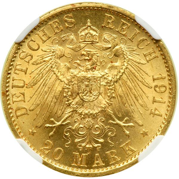 German States - Prussia. 20 Marks, 1914-A. NGC MS62