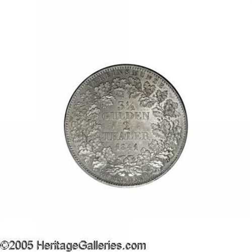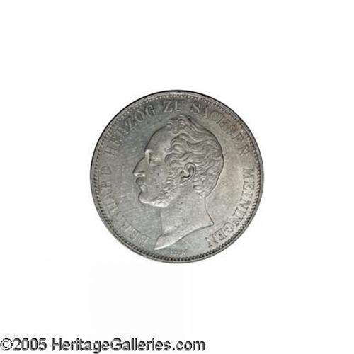 <B>Saxe-Meiningen. Bernhard II 2 Taler 1841,</B></I> KM152, Dav-834, XF/AU with prooflike surfaces. A very scarce type.