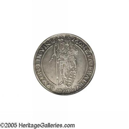<B>Saxe-Middle-Weimar. Pallas Taler 1622,</B></I> Dav-7531, XF40 PCGS. Relatively smooth surfaces for a coin of this age with somewhat uneven reverse rims.