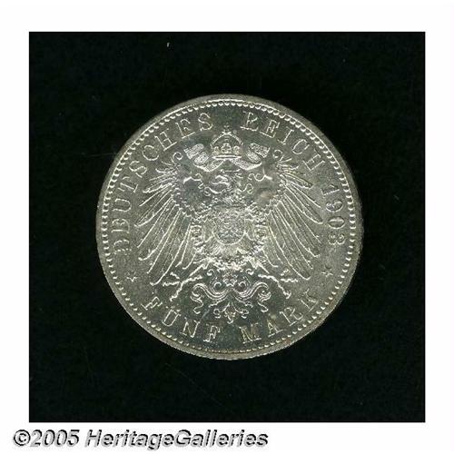 <B>Saxe-Weimar-Eisenach. Wilhelm Ernst 5 Mark 1903A,</B></I> KM-Y173, lustrous white UNC.
