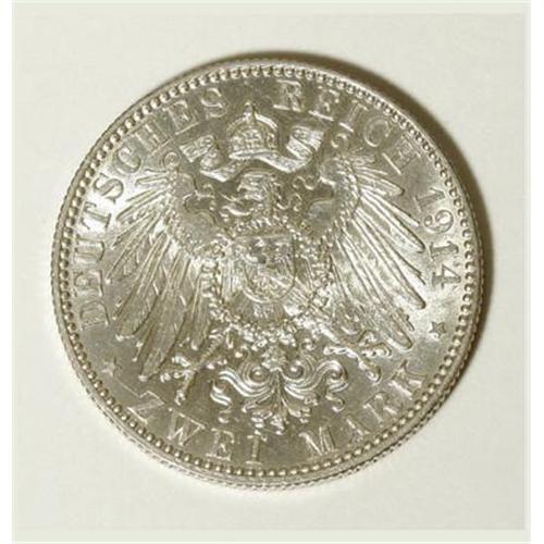 <B>Saxony. Friedrich August 2 Mark 1914E,</B></I> KM1263, fully lustrous AU-BU.<BR><BR><b>Shipping:</b> Coins & Currency (<a target="_blank" href="http://www.heritageauctions.com/common/shipping.php">view shipping information</a>)
