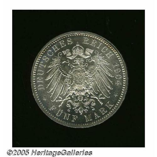 <B>Saxony. Georg 5 Mark 1904E,</B></I> Death of Georg, KM1262, BU with a few light obverse contact marks.