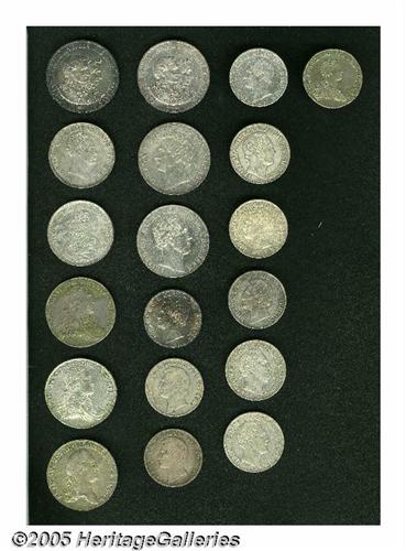 <B>Saxony. Large early lot consisting of:</B></I> 2/3 Taler 1768, KM981, VF; Taler 1781-IEC, KM993.2, XF; Taler 1800-IEC, KM1027.2, XF; Taler 1803-IEC, KM1036, VF; Taler 1827, KM1096, VF; Taler 1828, KM1112, VF; Taler 1845-F, KM1148, VF; Taler 1846-F, KM1148, VF; Taler 1854-F, KM1175, VF-XF; Taler 1857-F, KM1192, VF-XF; Taler 1858-F, KM1192, XF; Taler 1861-B, KM1214, cleaned VF; Taler 1867-B, KM1214, F-VF with rim bumps; Taler 1870-B, KM1223, VF; Taler 1871-B, Victory over France, KM1230, XF; 2 Taler 1851-F, KM1149, XF; 2 Taler 1855-F, KM1149, VF-XF; 2 Taler 1872-B, KM1231.1, XF; 2 Taler 1872-B, KM1231.1, Choice AU. <B>A sold as is, no return lot.</B></I> From the Dr. Kurt Peters Collection.