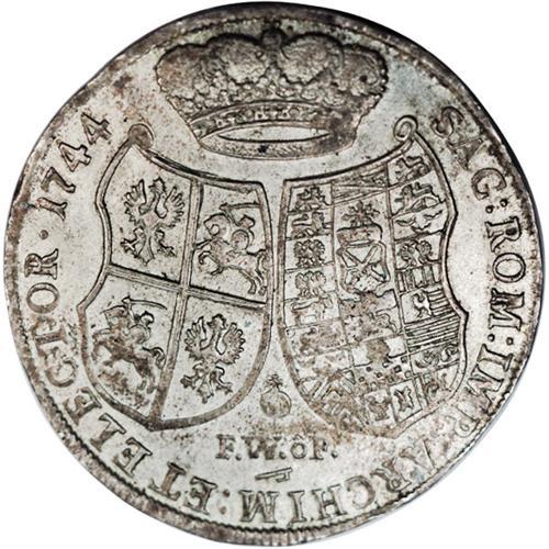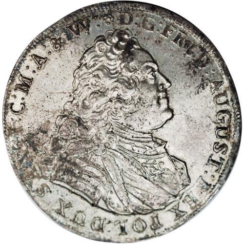 <B>Saxony. Friedrich August II Broad Taler 1744-FWoF, </B></I>KM880, Davenport 2665, toned AU, well-struck and very attractive.<BR><BR><b>Shipping:</b> Coins & Currency (<a target="_blank" href="http://www.heritageauctions.com/common/shipping.php">view shipping information</a>)