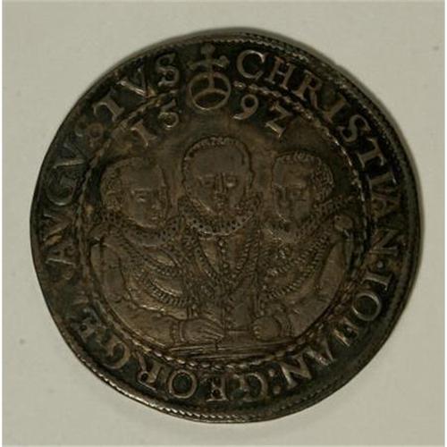 <B>Saxony. Three Brothers Taler 1592-HB,</B></I> Dav-9820, toned VF-XF, very attractive.<BR><BR><b>Shipping:</b> Coins & Currency (<a target="_blank" href="http://www.heritageauctions.com/common/shipping.php">view shipping information</a>)