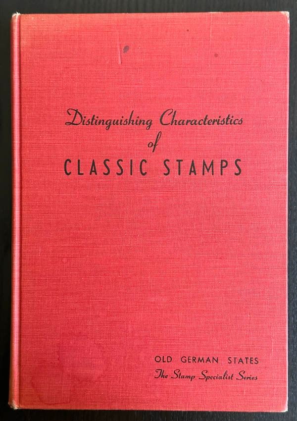 [German States] The Stamp Specialist, Distinguishing Characteristics of Classic Stamps: Old German States, Lindquist Publications, 1948, hard bound, 109 pages, with black & white illustrations, an excellent publication still used today. Slight tone spots front and back interleaving and slight water damage on reverse