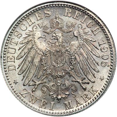 German States - Württemberg. 2 Mark, 1905-F. KM-631; J-174. Wilhelm II. NGC graded MS-65.