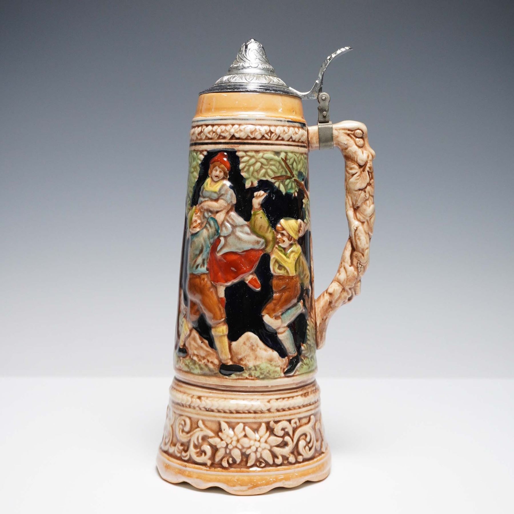 German-Style Beer Stein with Pewter Lid, Dancing Scene