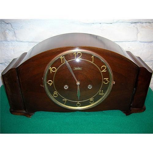 German Table?s Junghans Clock, working perfectly, the wood in some parts is with marks, but in good conditions. Made in Germany, it?s marked ?278?, ?38?. ?2?. Sounds every half hour.