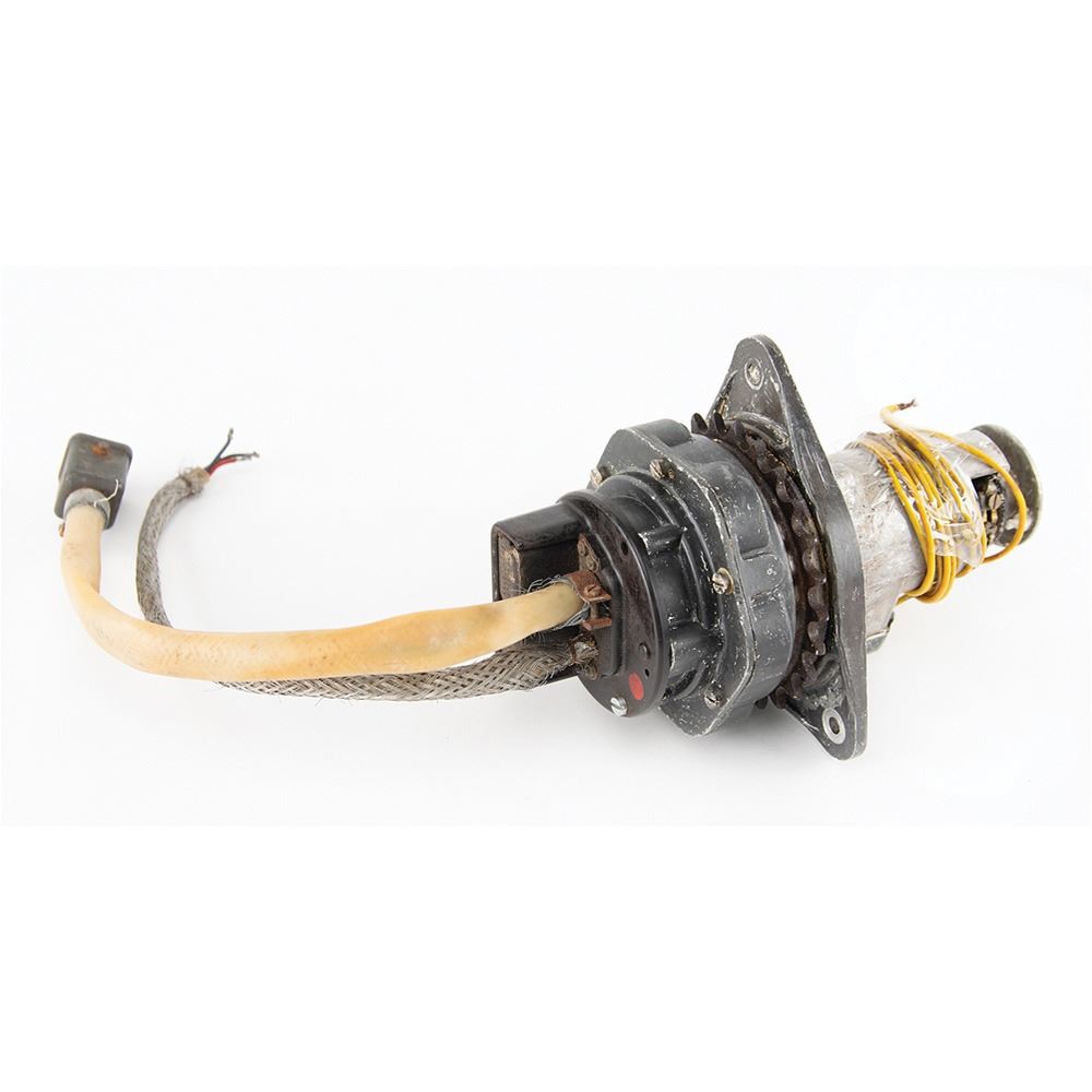 External rudder control actuator from a German V-2 (A4) rocket, circa 1942‰ÛÒ1945, measuring 8è x 5.5è x 6è plus attached cables, featuring an electric motor attached to a central drive sprocket. The sprocket rotates to drive a chain‰ÛÓnot unlike that of a motorcycle‰ÛÓto control the external air-rudder vanes. Part of the casing is marked "707/78735," with a Reichsadler military eagle stamp below.