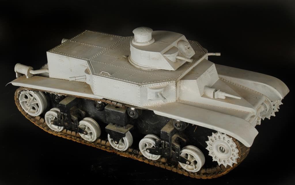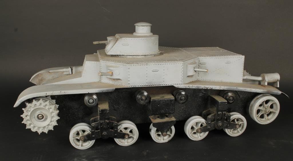 German WW II armored vehicle or tank model; very well constructed of metal, wood and composite cast material; no markings or indication as to age; possibly made for War College or training?? Approximately 11.5” in height by 25.5”; definitely vintage, possible period of WW II but cannot verify. Est.: $300-$600.