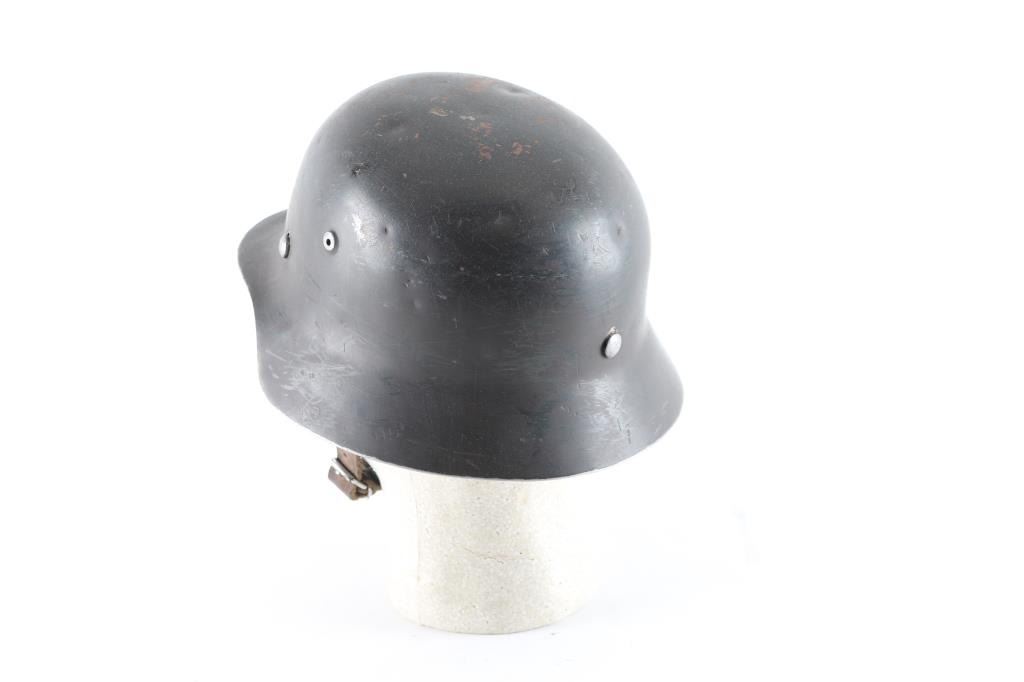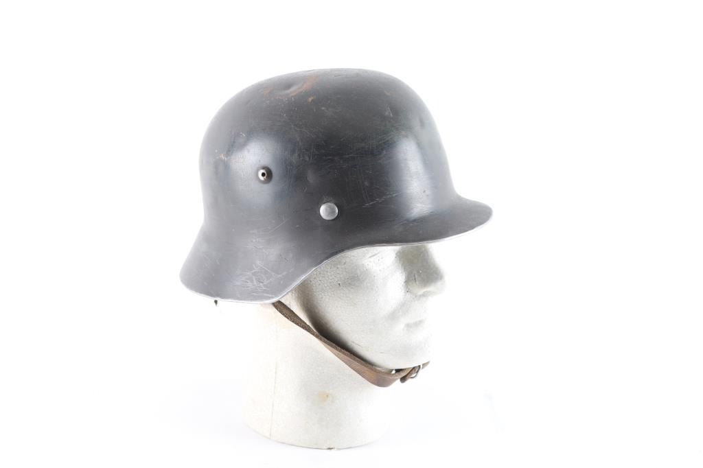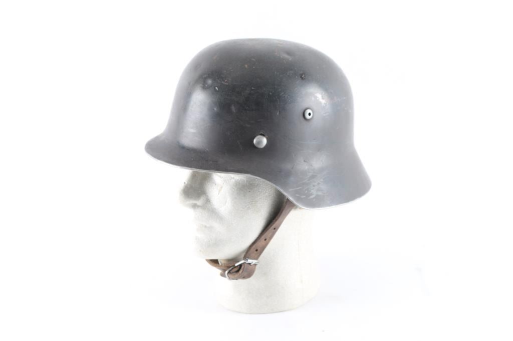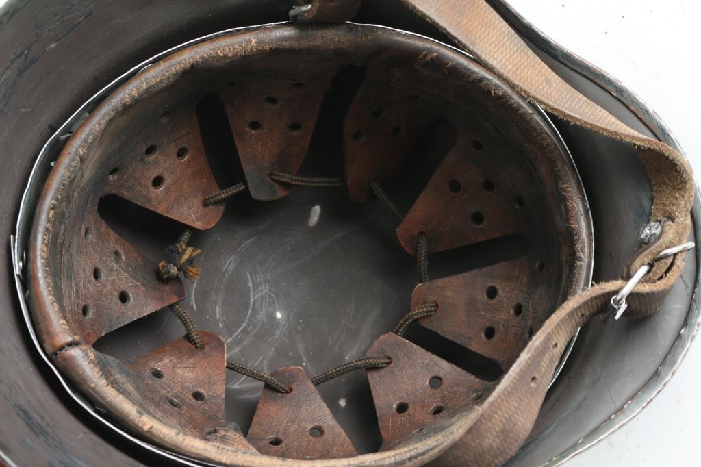 Full liner & chinstrap, no decals. The helmet rim, vent hole, & liner pins have been buffed, and are in the white. (/) Needs some touch up. Overall very good condition, chin strap appears to be a newer replacement.