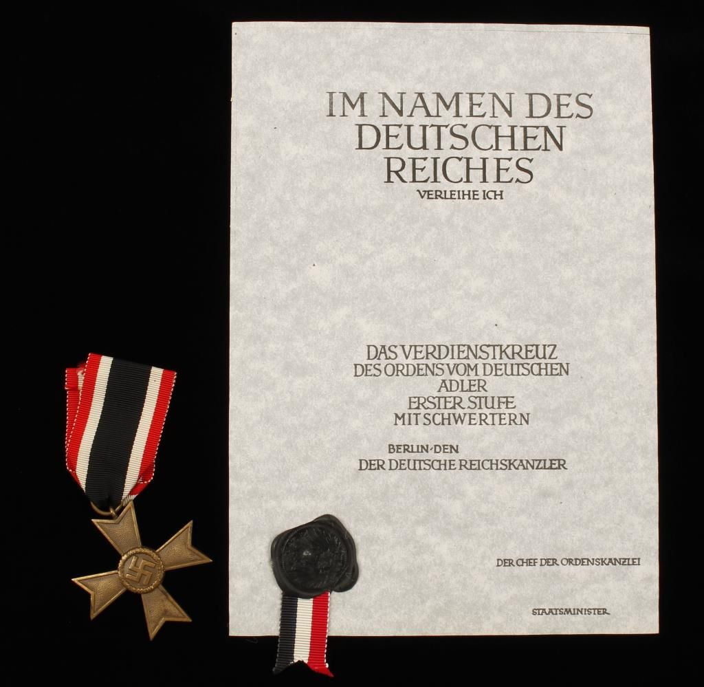Swords. Includes the issue ribbon Also includes an unissued War Service Cross award document. Measures 5 7/8" wide by 8 1/2" tall. Printed paper construction with a wax seal. Offered "as is", we don't guarantee the authenticity of this item, please do your research. All sales are final.