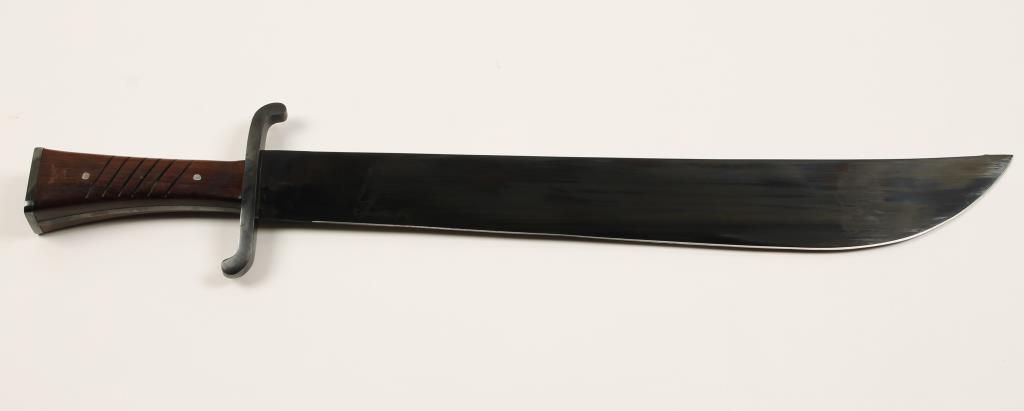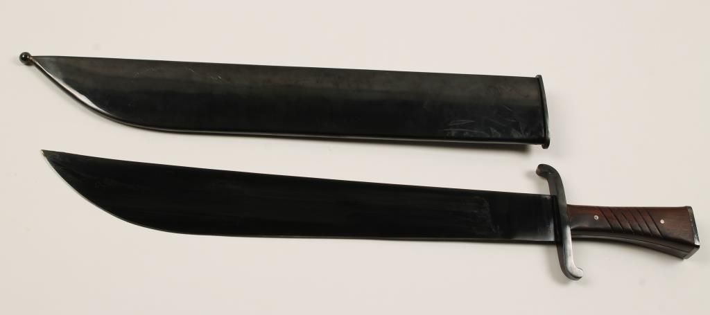 Scabbard. Measures21 11/16" long overall. The blued steel blade measures 2 3/16" wide by 16 1/4" long. The blued steel scabbard measures 2 1/2" wide by 17 1/16" long. Has a pair of wood handles. The front one is marked with a Luftwaffe waffen ampt and dated '1943'. Offered "as is", we don't guarantee the authenticity of this item, please do your research. All sales are final.