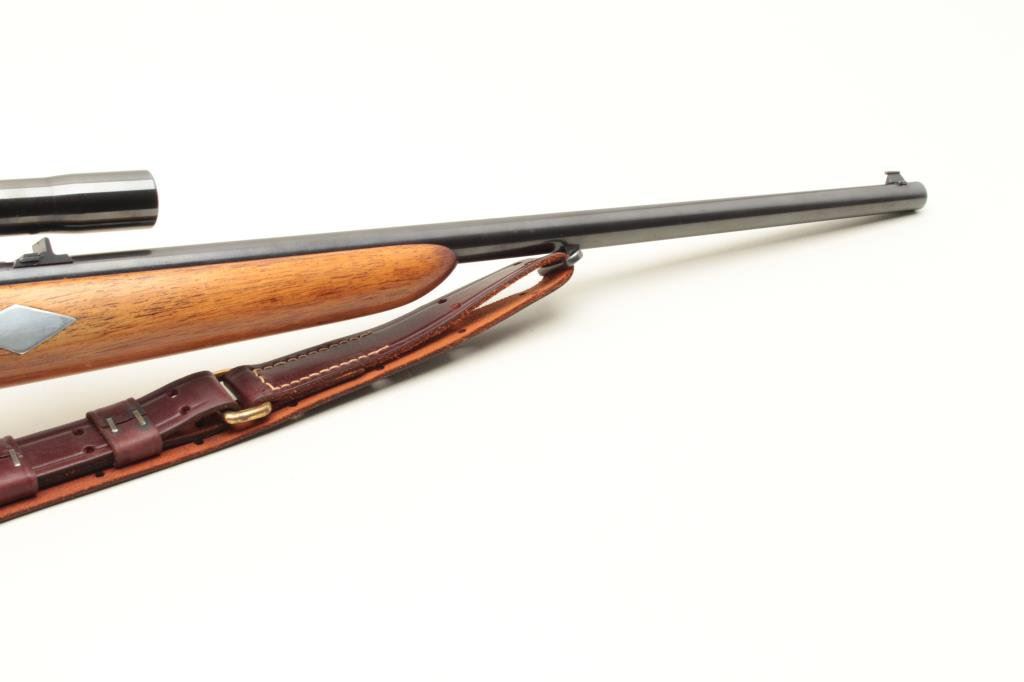 caliber, 20.5” barrel, blued finish, checkered wood stock, leather sling, S/N 4582, in overall very good condition, mounted with a Weaver scope displaying crisp optics. (C&R). Est.: $350-$700.