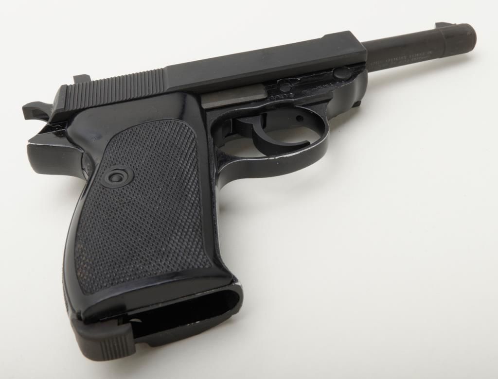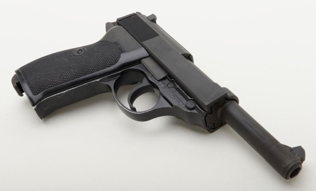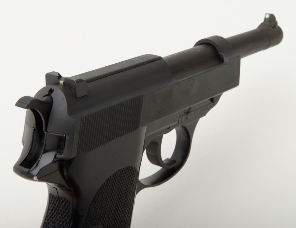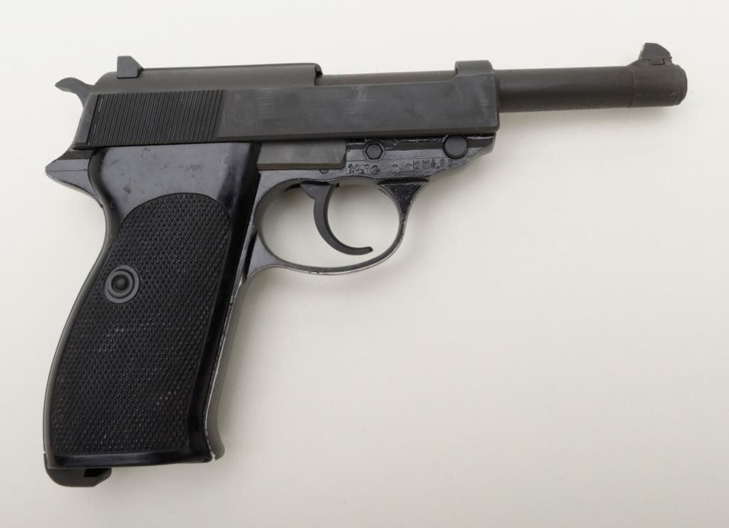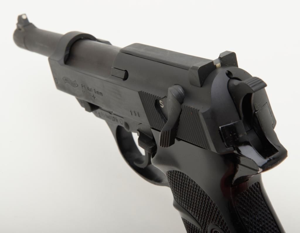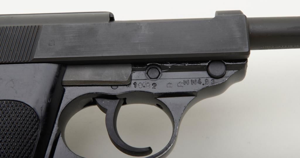German Walther P-1 DA semi-auto pistol, 9mm cal., 5” barrel, import-marked, re-finished, checked bla