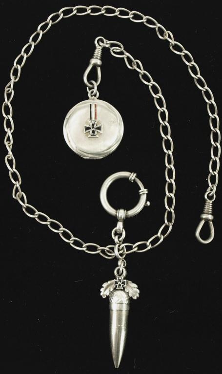 and hollow bullet tip with hidden compartment fob, decorated with iron cross dated 1916.