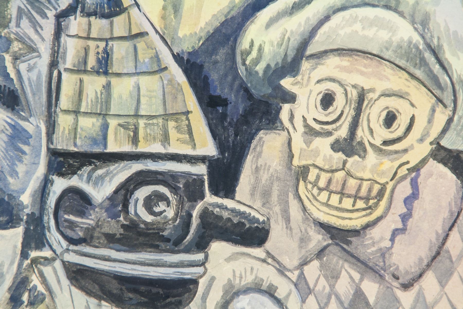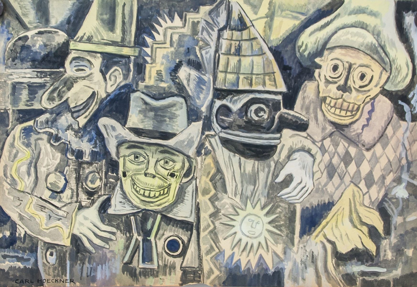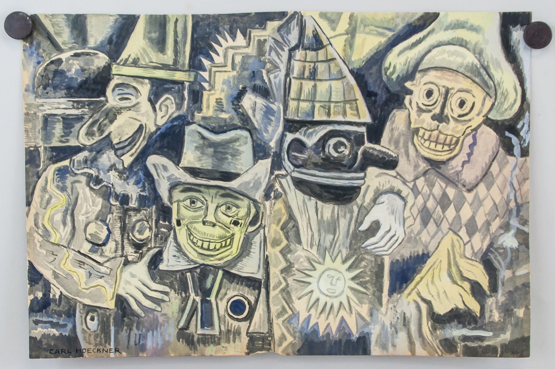 Watercolor on paper. Featuring a narrative drawing. Signed Carl Hoeckner on the lower left corner. 24 x 34 cm (9.5 x 13.4 inches).