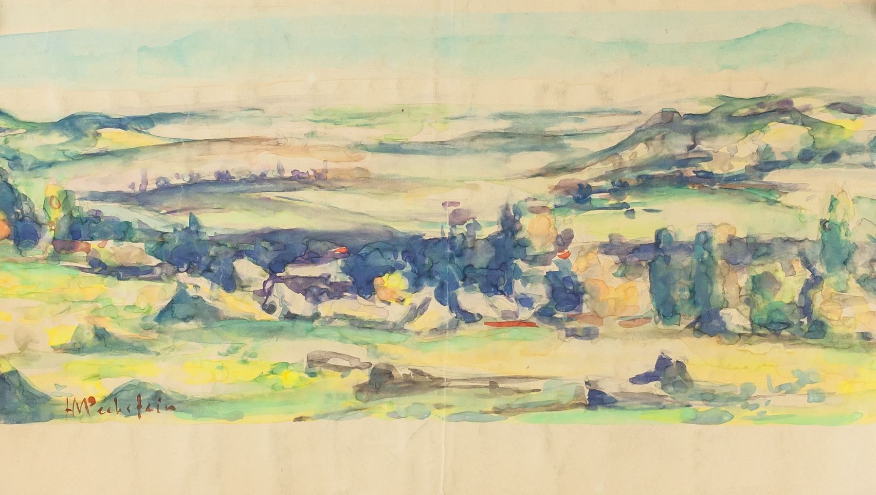 Watercolor on paper. Featuring impressionist landscape scene. Signed "HMPechstein" in the bottom left corner. 26 x 45 cm (10 x 17.75 in). Provenance: This lot carries limited provenance from a Southern Ontario estate