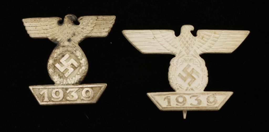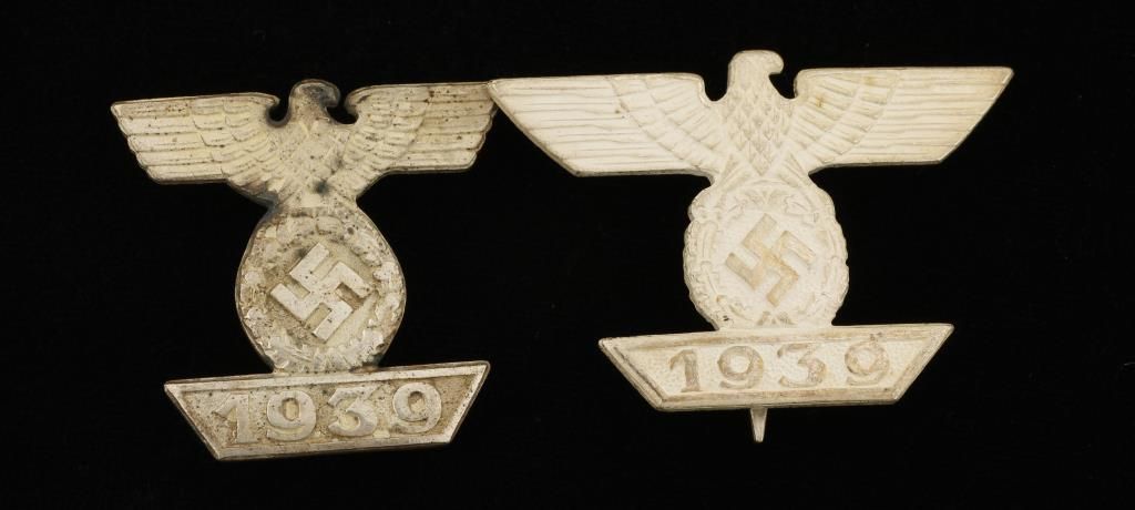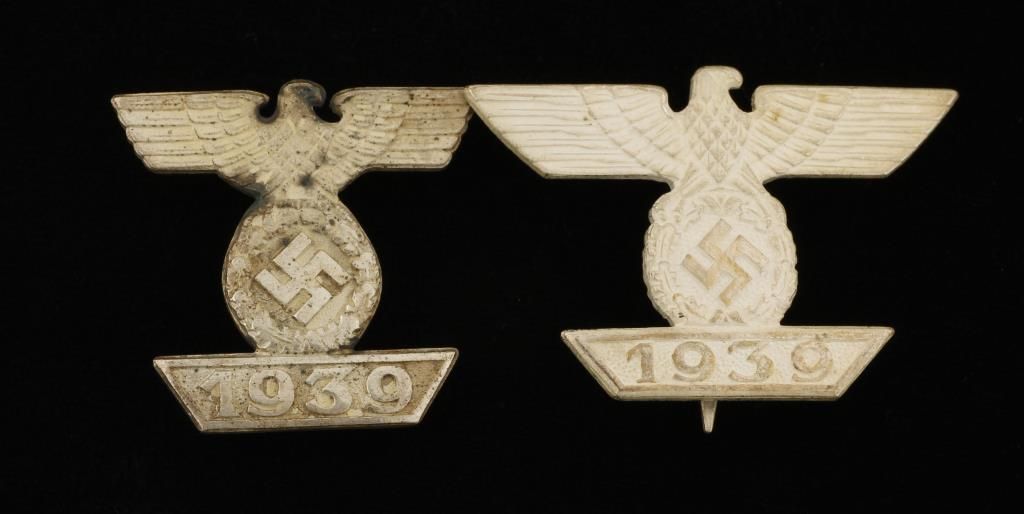 To the iron cross. Has a wide vertical pin back. Maker marked 'C E Junker Berlin SW 68'. Also includes a 2nd clasp to the iron cross. Has four flat prongs on reverse side. Nickel Construction.