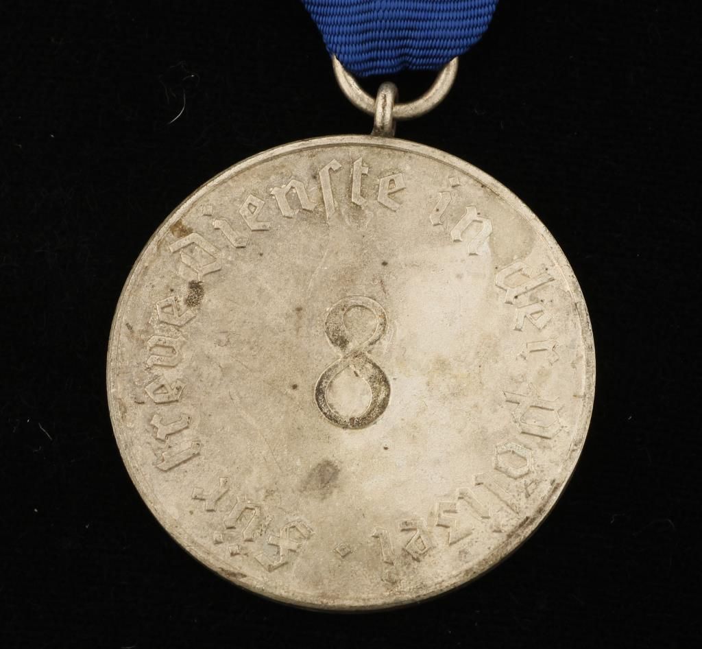 Eagle maker marked 'CTD'. Aluminum construction. Also included is an 8 Year Police Long Service Decoration with the issue ribbon.