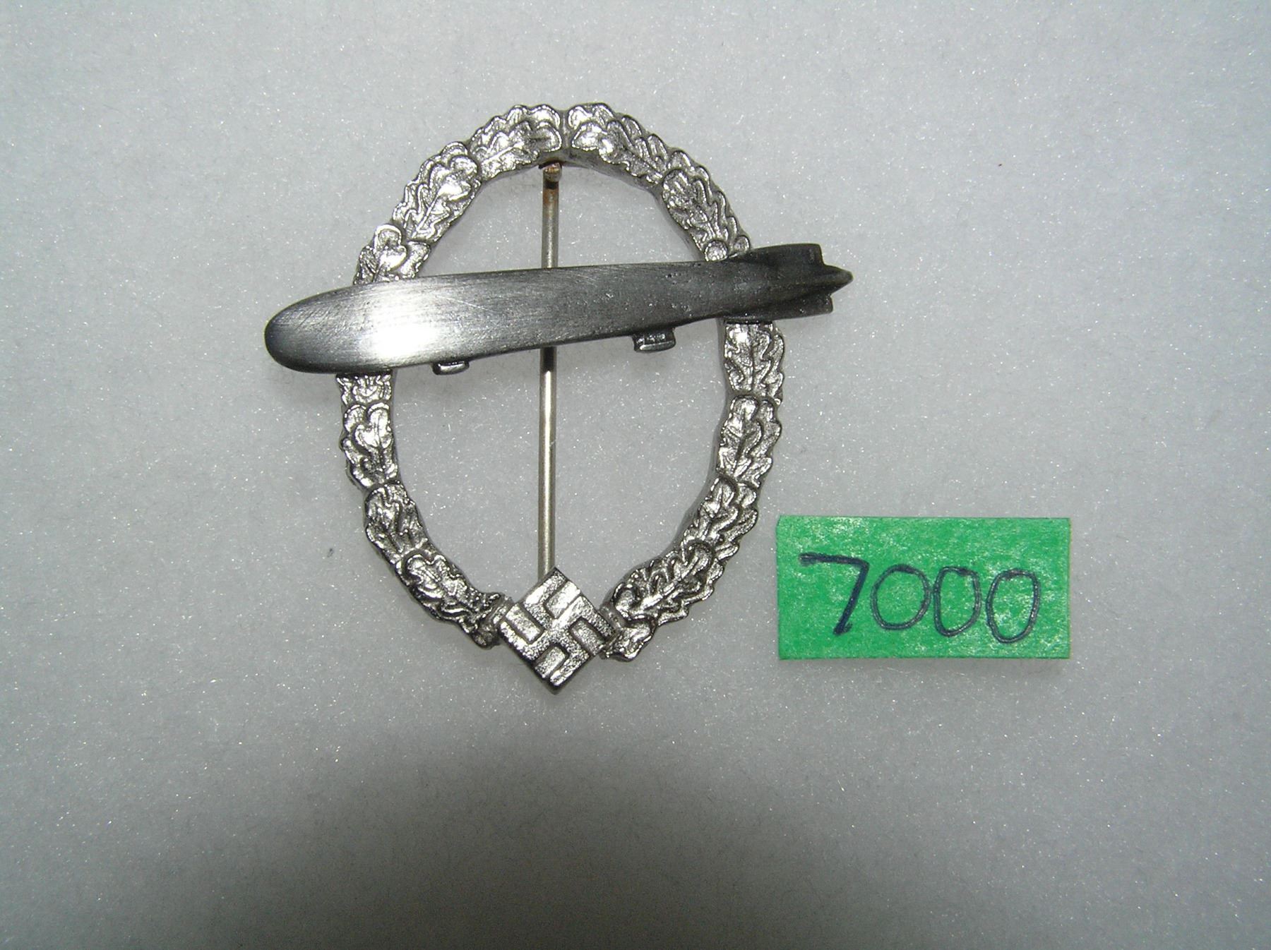 German air ship badge silver colored Zepplin WWII style high quality reproduction collectors, re-enactors,historical or theatrical collectors piece est. value $80.00-$100.00