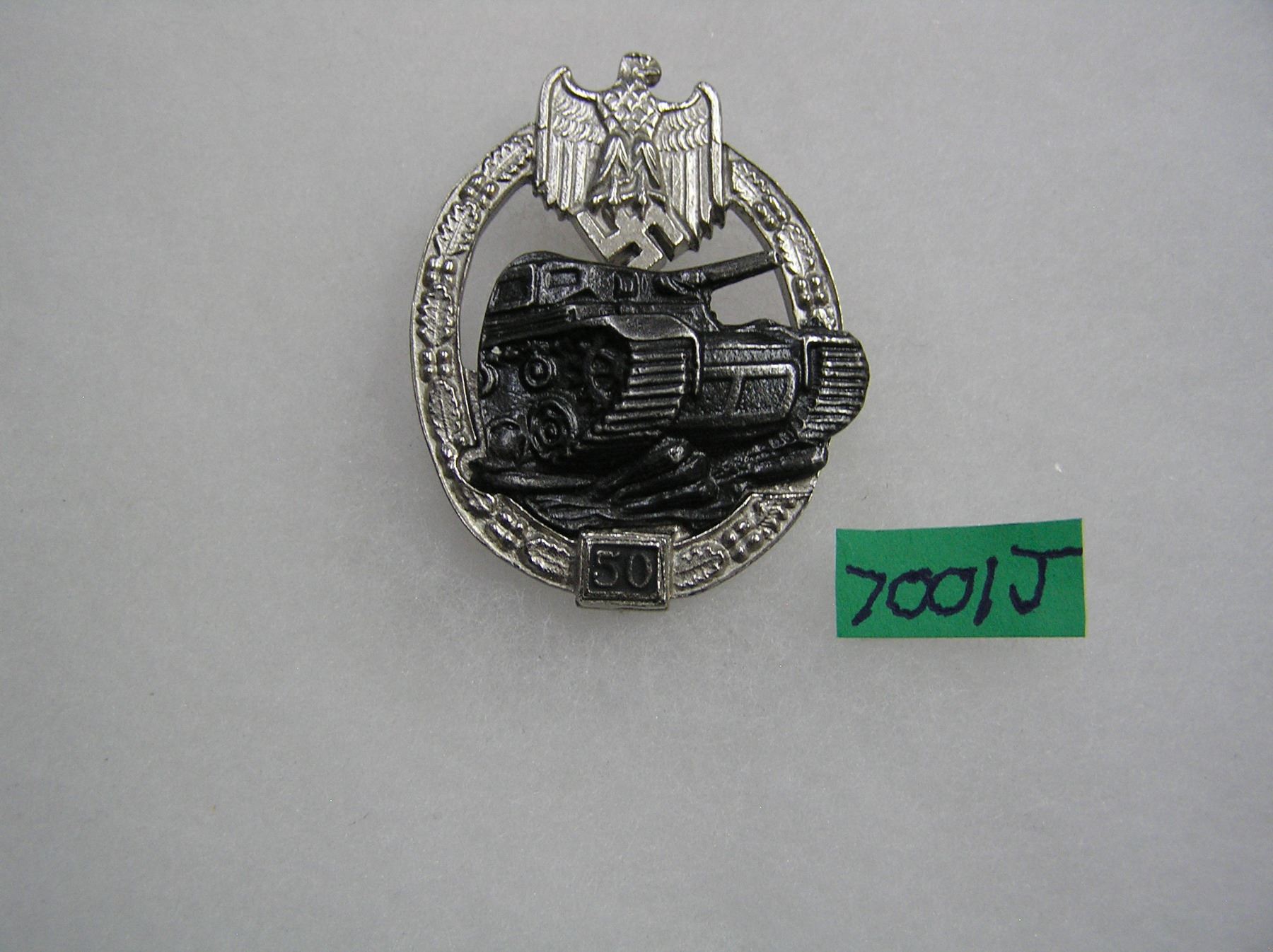 German army tank battle badge 50 actions silver and antique silver color WWII style high quality reproduction collectors, re-enactors,historical or theatrical collectors piece est. value $75.00-$80.00