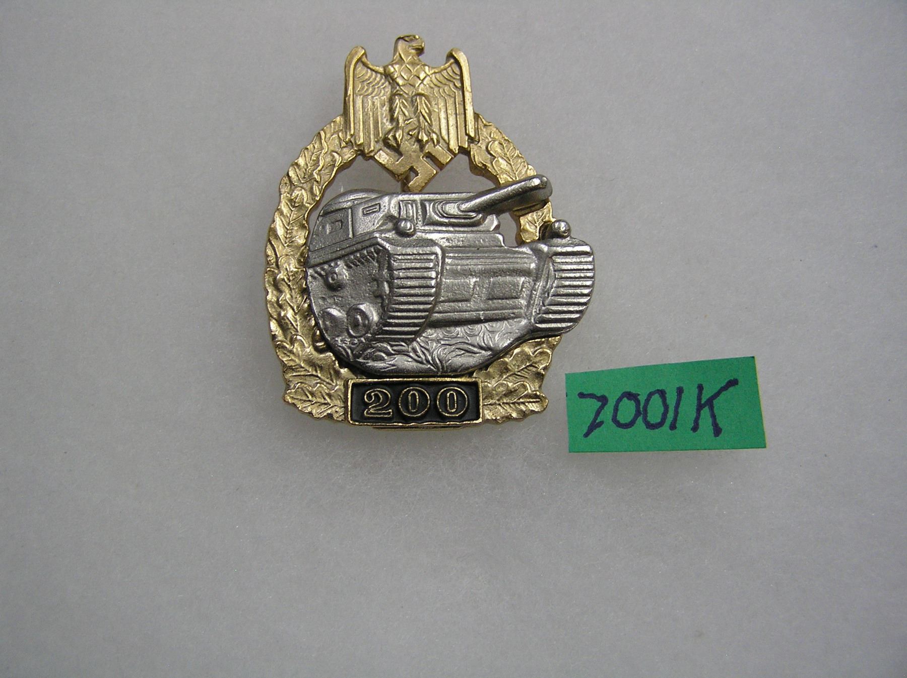 German army tank battle badge WWII style high quality reproduction collectors, re-enactors,historical or theatrical collectors piece est. value $80.00-$100.00