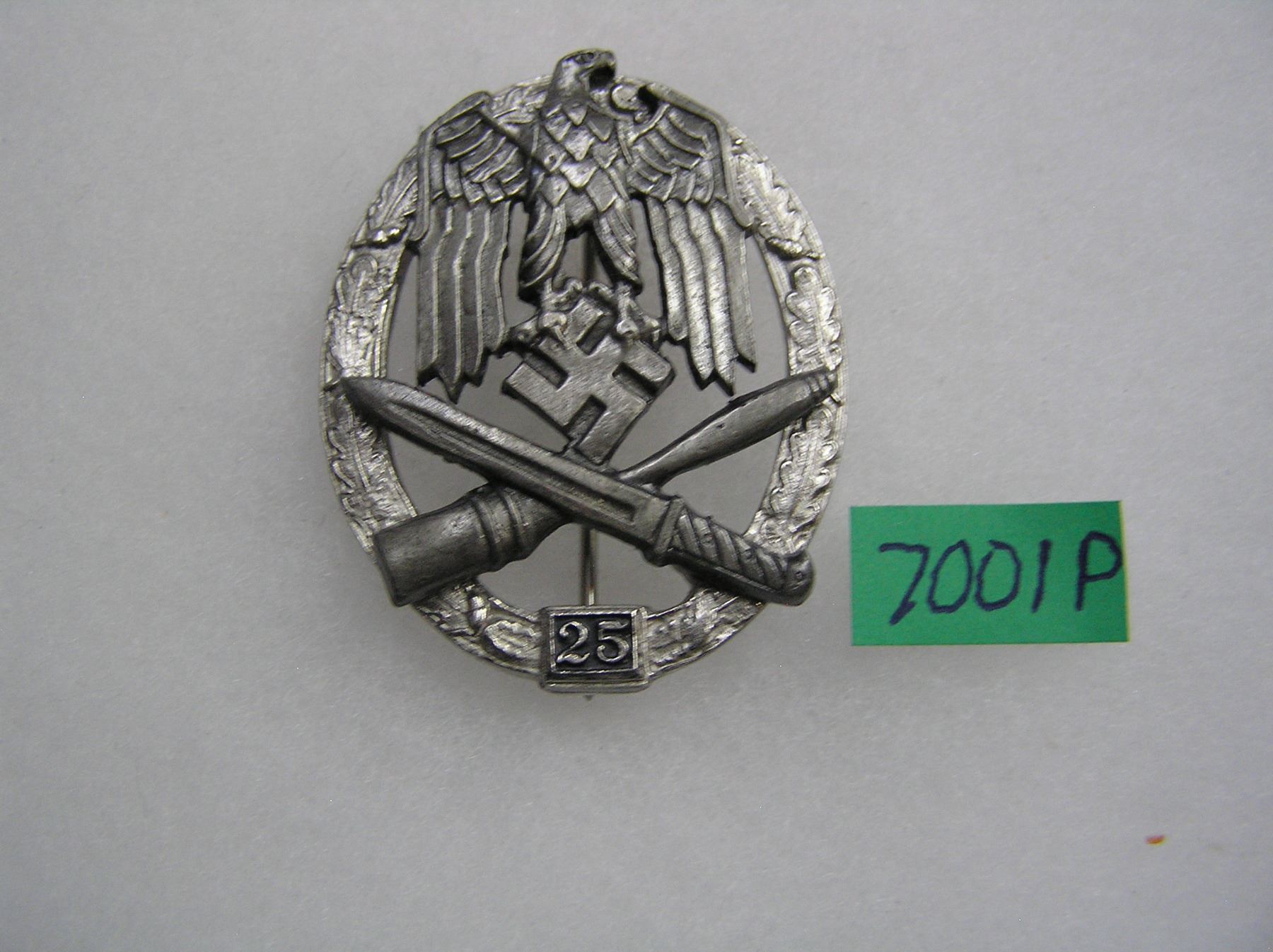 German general assault badge 25 actions WWII style high quality reproduction collectors, re-enactors, historical or theatrical collectors piece est. value $75.00-$80.00