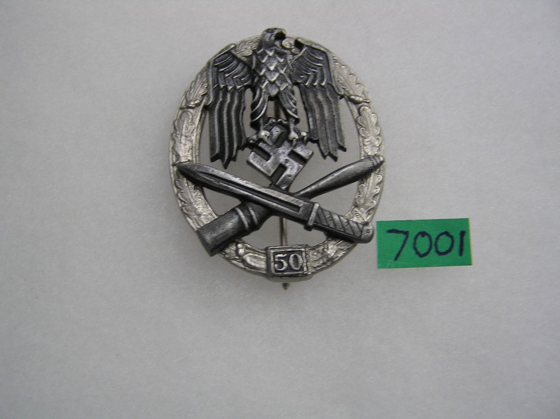 German general assault badge 50 actions silver with antique silver color WWII retro style high quality reproduction collectors, re-enactors,historical or theatrical collectors piece est. value $75.00-$80.00