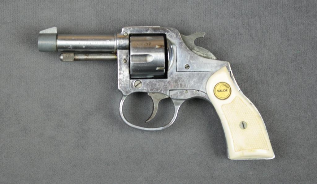German-made Valor pocket DA revolver, .22  short cal., 2-1/2” barrel, nickel finish,  checkered medallion faux ivory grips,  #133597. This gun is in overall good  condition showing the majority of its finishwith some scattered wear, good action, bore  and grips.  Est.:  $100-$200.