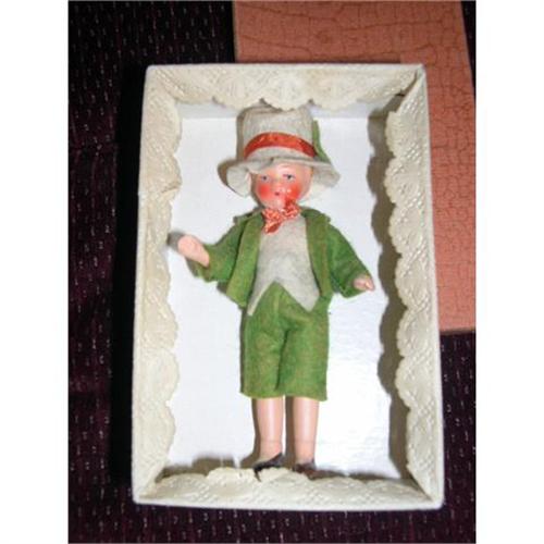 Irish man mint in the box. He's 4 1/4" tall. He's all bisque with the moveable arms and legs. The inside of the box is stamped Irish and it's stamped Germany on the outside of the box. If you can enjoy him, please bid. He is from a smoke free environment. Buyer to pay $10.00 for U.S. shipping, insurance, and handling. Thanks for viewing.