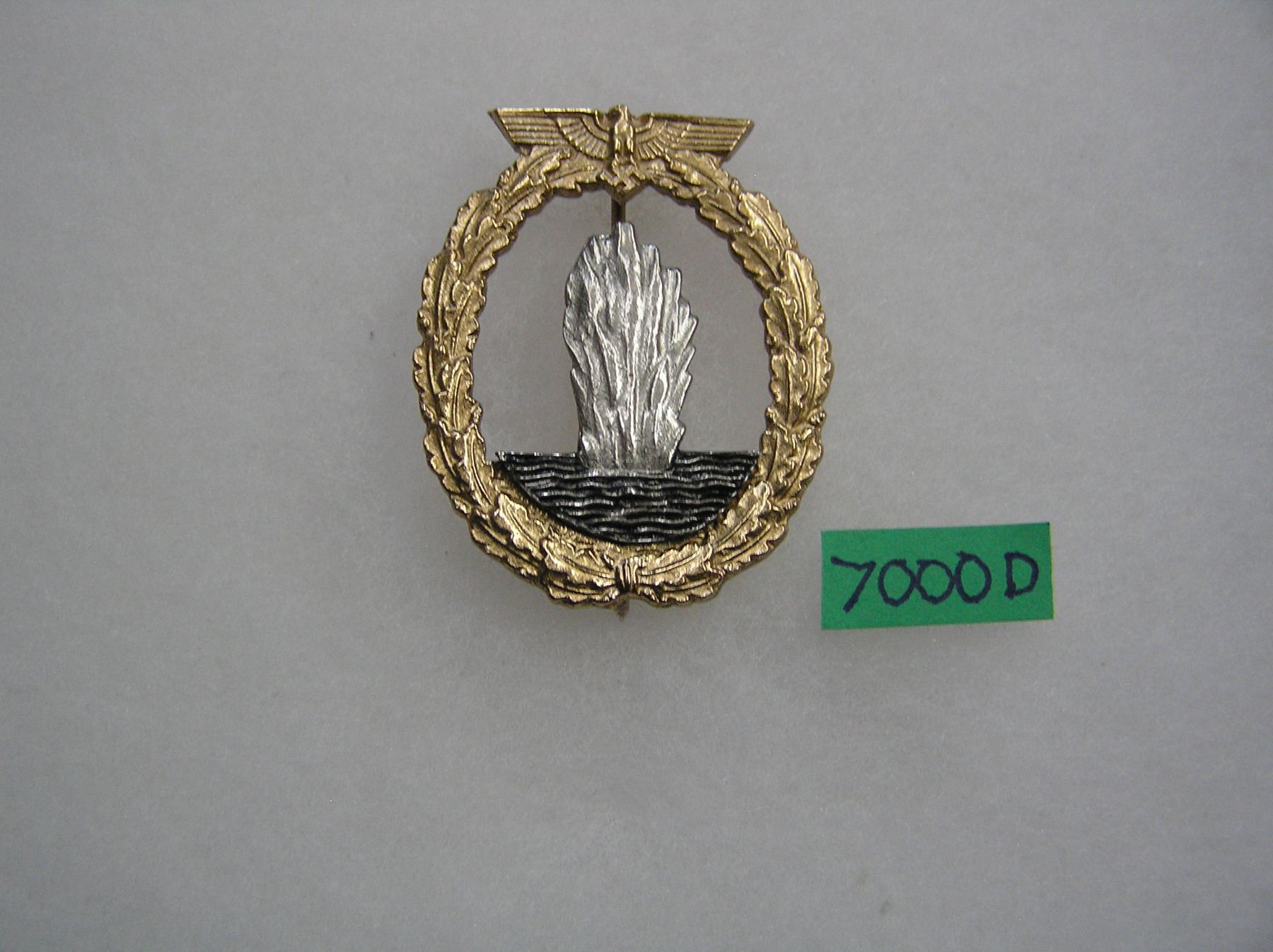 German mine sweeper war badge in gold and antique silver color WWII style high quality reproduction collectors, re-enactors,historical or theatrical collectors piece est. value $75.00-$80.00