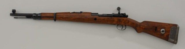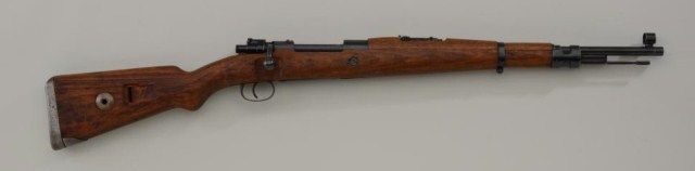 German model G33/40 Mountain carbine with Dot Arsenal marks on action dated 1942. 8 mm Mauser 20"bbl, Nazi proofs #4068. Nazi eagle with small "c" under number. 90-95% original bright arsenal blue with sharp markings,excellent bore, crisp interior showing little use. Proof on top of bolt near handle (matching). Stock shows 4068c on belly. Correct large butt plate. The best carbine of mountain type we have seen in a decade froma premier So Cal collection. Est.$2,500-$5,000. No important marks.