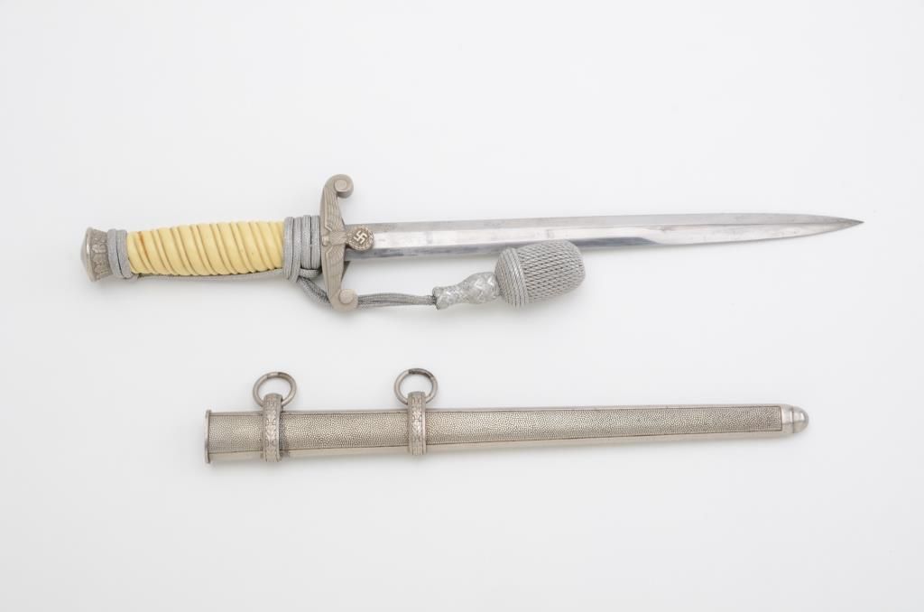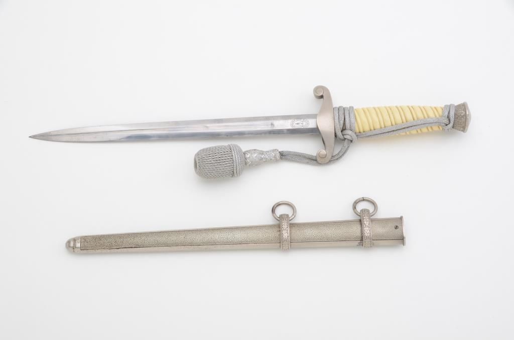 German nazi army dagger and sheath with hanger and knot in overall near fine condition; blade by Plumacher. Est.: $300-$600.