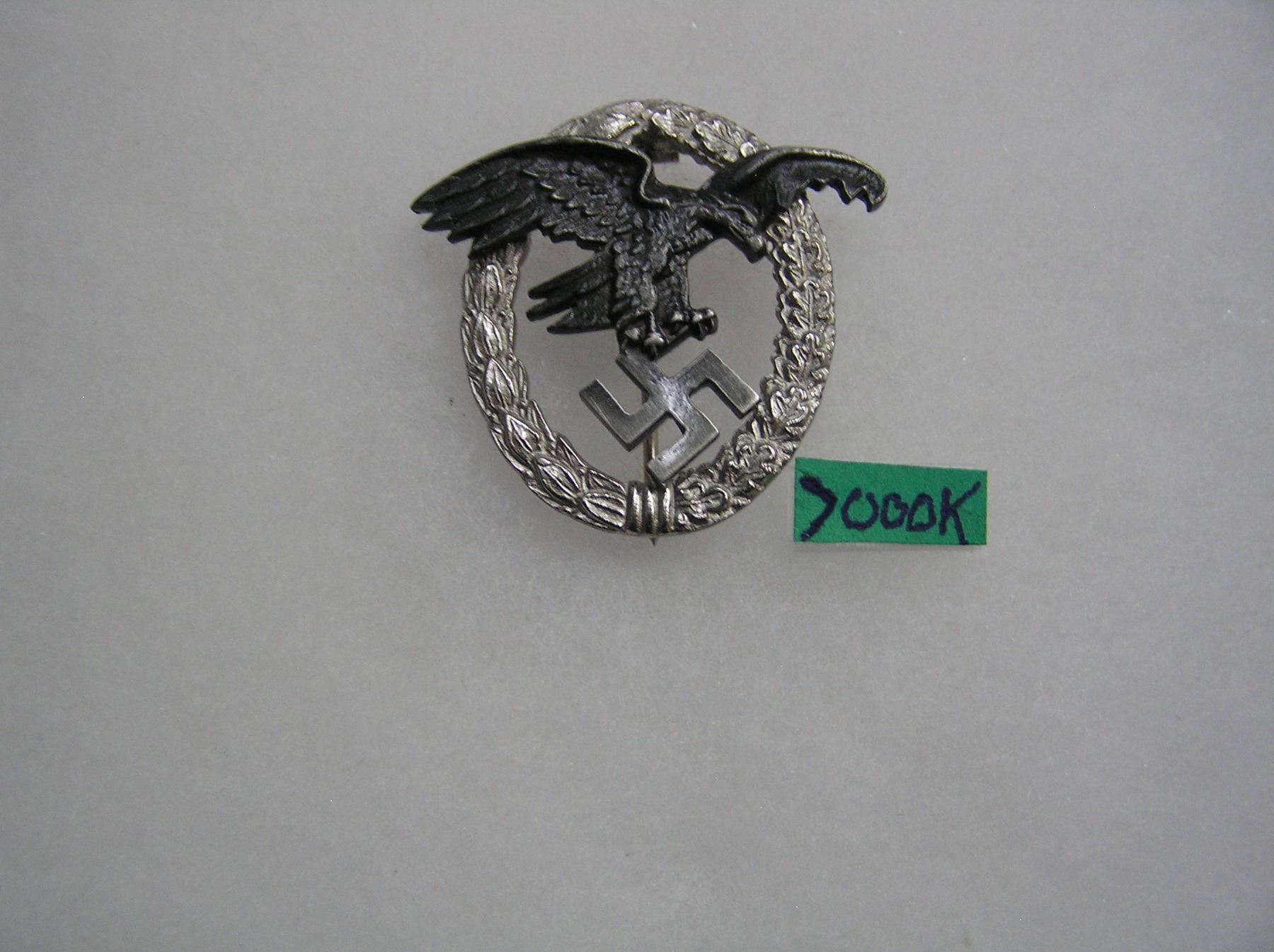 German observer's badge silver and black color WWII retro style high quality reproduction collectors, re-enactors,historical or theatrical collectors piece est. value $65.00-$75.00
