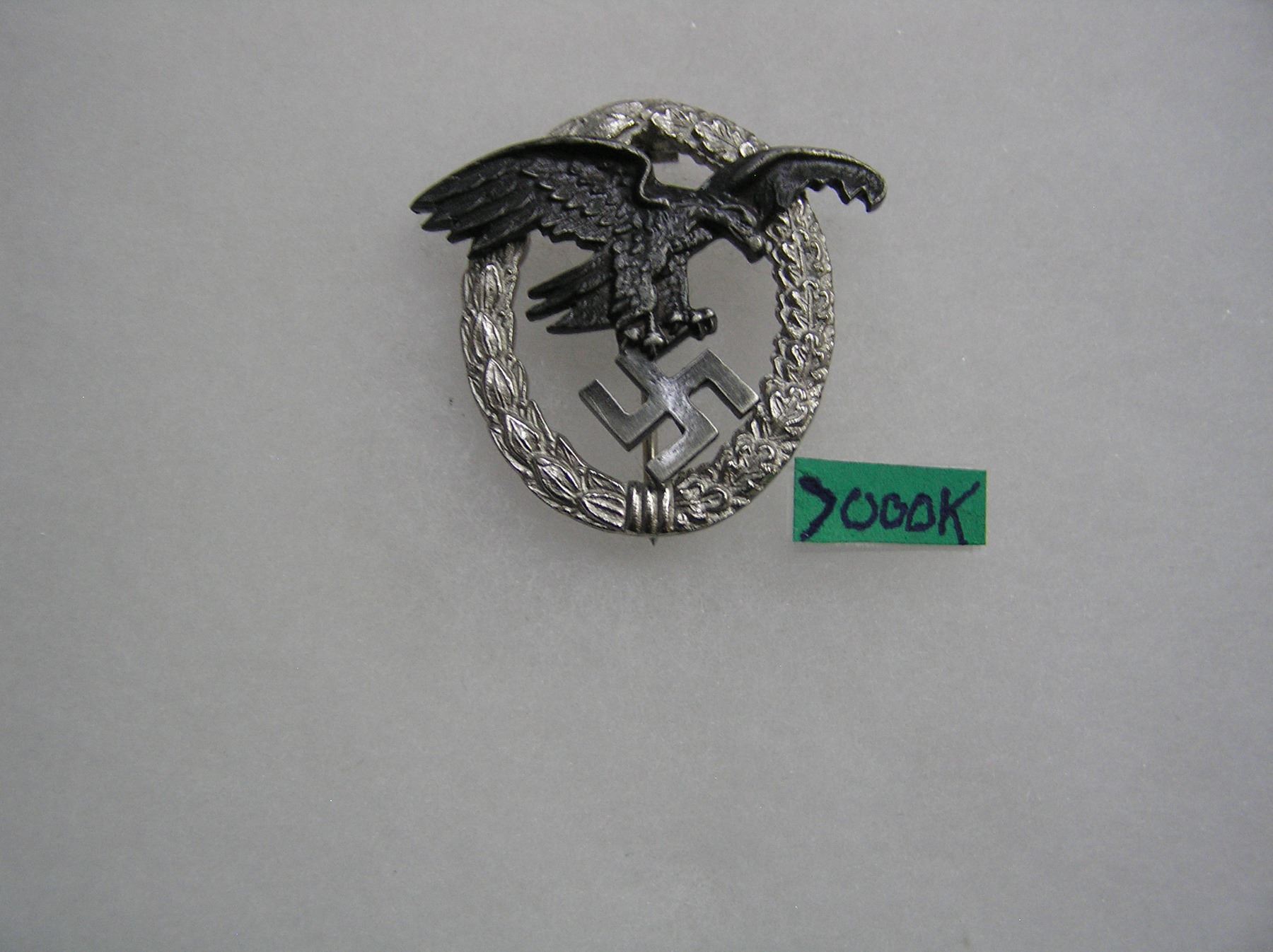 German observer's badge silver and black color WWII style high quality reproduction collectors, re-enactors,historical or theatrical collectors piece est. value 65.00-75.00