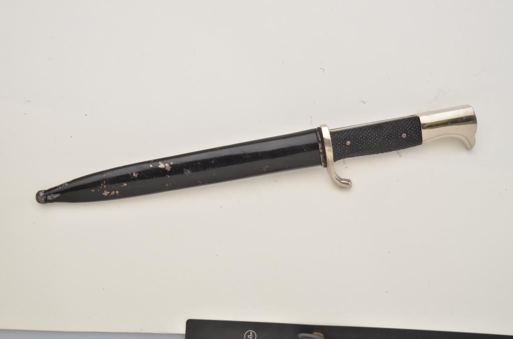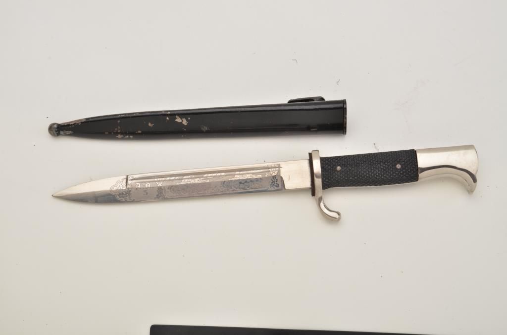 German remembrance dagger and sheath with tank theme blade in overall very good + condition. Est.: $200-$400.