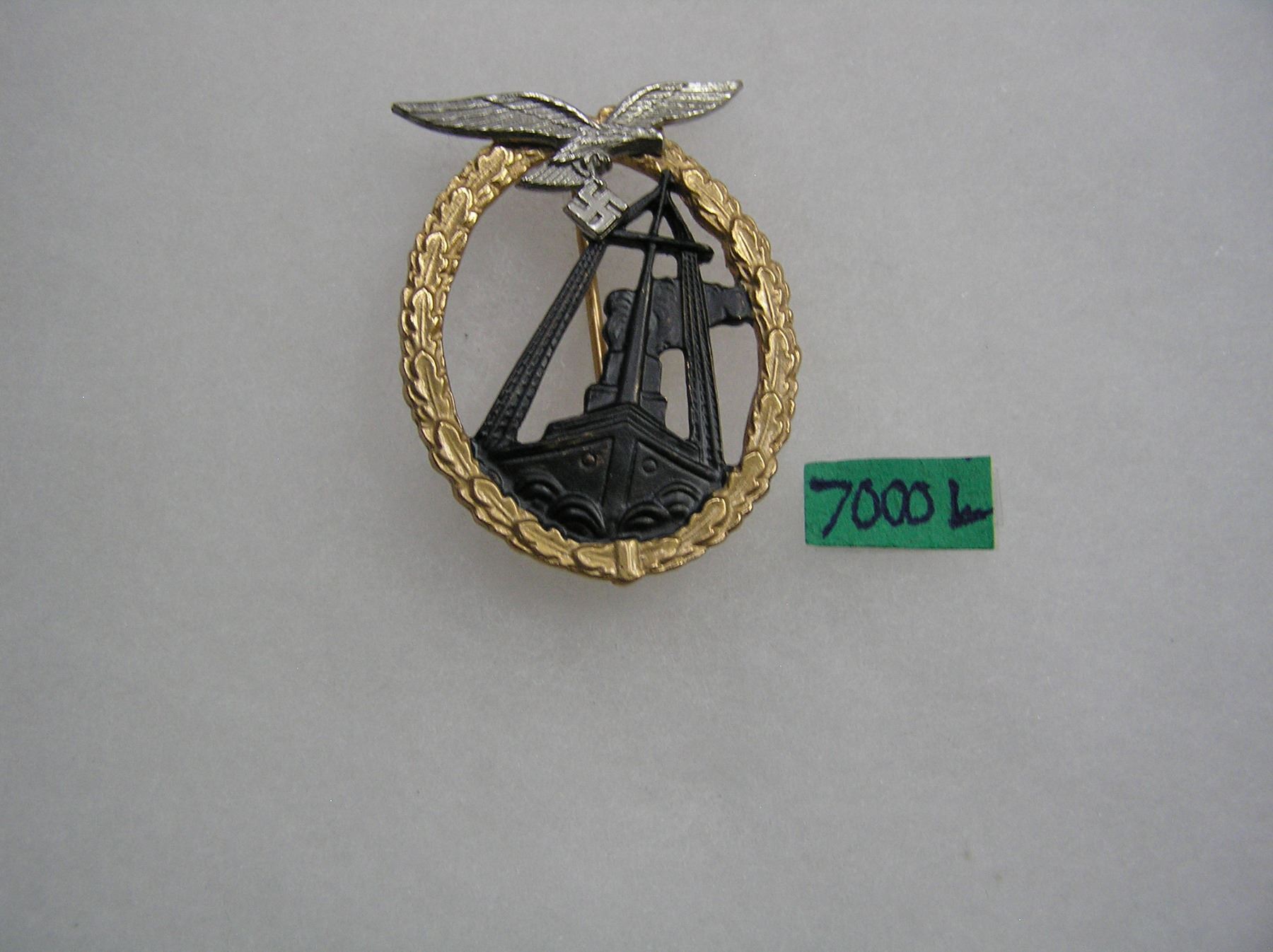 German sea battle badge gold, silver and black WWII style high quality reproduction collectors, re-enactors, historical or theatrical collectors piece est. value $75.00-$80.00