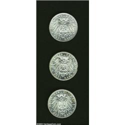 <TABLE cellSpacing=0 cellPadding=0 width="100%" bgColor=#000000 border=0><TBODY> <TR><TD width="100%"><TABLE cellSpacing=1 cellPadding=3 width="100%" border=0><TBODY><TR><TD width="100%" bgColor=#79735c><FONT face=arial color=#ffffff size=3><B>Description</B> </FONT></TD></TR><TR><TD width="100%" bgColor=#ffffff><FONT face=arial size=2><B>German states 3 Marks including:</B></I> Saxe Meiningen 1915, KM-207, prooflike Uncirculated; Saxe-Weimar-Eisenach 1910A, KM176, AU; and a Schwarzburg-Sondershausen 1909A, KM212, AU. (3 coins) </FONT></TD></TR></TBODY></TABLE></TD></TR></TBODY></TABLE><BR><A name=PricesRealized></A><TABLE cellSpacing=0 cellPadding=0 width="100%" bgColor=#000000 border=0><TBODY><TR><TD width="100%"><TABLE cellSpacing=1 cellPadding=3 width="100%" border=0><TBODY><TR><TD width="100%" bgColor=#79735c><A name=PR><FONT face=arial color=#ffffff size=3><B>Previous Prices from Heritage Auctions</B> </FONT></A></TD></TR><TR><TD bgColor=#f6f6ed>No Prior Data Recorded </TD></TR><TR><TD bgColor=#ffffff><FONT face=arial size=1 ?>PLEASE NOTE: All prices realized reflect the final hammer price PLUS the buyer's premium in auctions that charge a buyer's premium. Each item has a notation at the top of the listing indicating whether that lot included a buyer's premium. Example: A item that sells with a final hammer price of $100 and a 20% buyer's premium will display with a price realized of $120. All information listed is intended to be as accurate as possible, but errors are possible. Please use this guide carefully and inform us of any inaccuracies. </FONT></TD></TR></TBODY></TABLE></TD></TR></TBODY></TABLE><BR><TABLE cellSpacing=0 cellPadding=0 width="100%" bgColor=#000000 border=0><TBODY><TR><TD width="100%"><TABLE cellSpacing=1 cellPadding=3 width="100%" border=0><TBODY><TR><TD width="100%" bgColor=#79735c colSpan=6><FONT face=arial color=#ffffff size=3><B>Price Guide*</B> </FONT></TD></TR><TR bgColor=#f6f6ed><TD align=middle><B>Grade</B> </TD><TD align=middle><B>Coin World<BR>(Trends)</B> </TD><TD align=middle><B>Numismedia<BR>Retail</B> </TD><TD align=middle><B>Numismedia<BR>Wholesale</B> </TD><TD align=middle><B>Coin<BR>Universe</B> </TD><TD align=middle><B>Heritage<BR>Value Index</B> </TD></TR><TR><TD colSpan=6>No Pricing Data Available</TD></TR><TR bgColor=#ffffff><TD colSpan=6><FONT size=1>*All information listed is intended to be as accurate as possible, but errors are possible. No item may be returned or refused based on this information which is provided as a service to our customers. You should contact each pricing source directly to determine the accuracy of this information. </FONT></TD></TR></TBODY></TABLE></TD></TR></TBODY></TABLE><BR><TABLE cellSpacing=0 cellPadding=0 width="100%" bgColor=#000000 border=0><TBODY><TR><TD width="100%"><TABLE cellSpacing=1 cellPadding=3 width="100%" border=0><TBODY><TR><TD width="100%" bgColor=#79735c><FONT face=arial color=#ffffff size=3><B>Population Guide</B> </FONT></TD></TR><TR bgColor=#ffffff><TD ali Important notice: Heritage usually auctions material at the rate of 200-250 lots per hour. On some occasions eBay Live bid software or the Internet may not be able to keep up with the pace of the auction. We recommend placing a realistic absentee bid now as insurance to avoid disappointment. Occasionally the auctioneer may eliminate or reject an eBay Live bid, and the auctioneer may also reopen a lot after the close of the eBay live bidding (usually because we missed an audience bid), and may reject your bid even if it shows you as the winning bidder. By bidding via eBay Live, you agree that Heritage may award the lot to another bidder at its sole discretion under the circumstances described above or any other reasonable circumstances. Also please note that all Heritage lots purchased through eBay Live carry a 20% Buyer's Premium. Please make sure you read the Terms and Conditions before you bid.</TD></TR></TBODY></TABLE></TD></TR></TBODY></TABLE>
