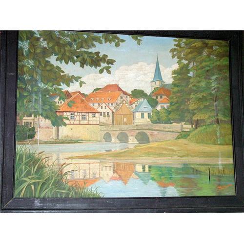 Beautiful Decorative oil painting of a German Town, signed by W. Boethig dated 1928, framed.