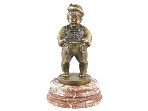 Cast bronze with patina, marble base. Marked on the base: Germanh, 1937.     Size: 23 cm