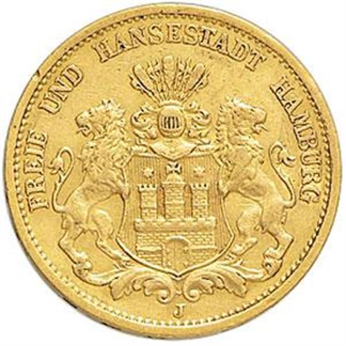Monete e Medaglie Estere. Germania-Amburgo. 20 marchi 1878. Fr.28. AU. Bel BB.